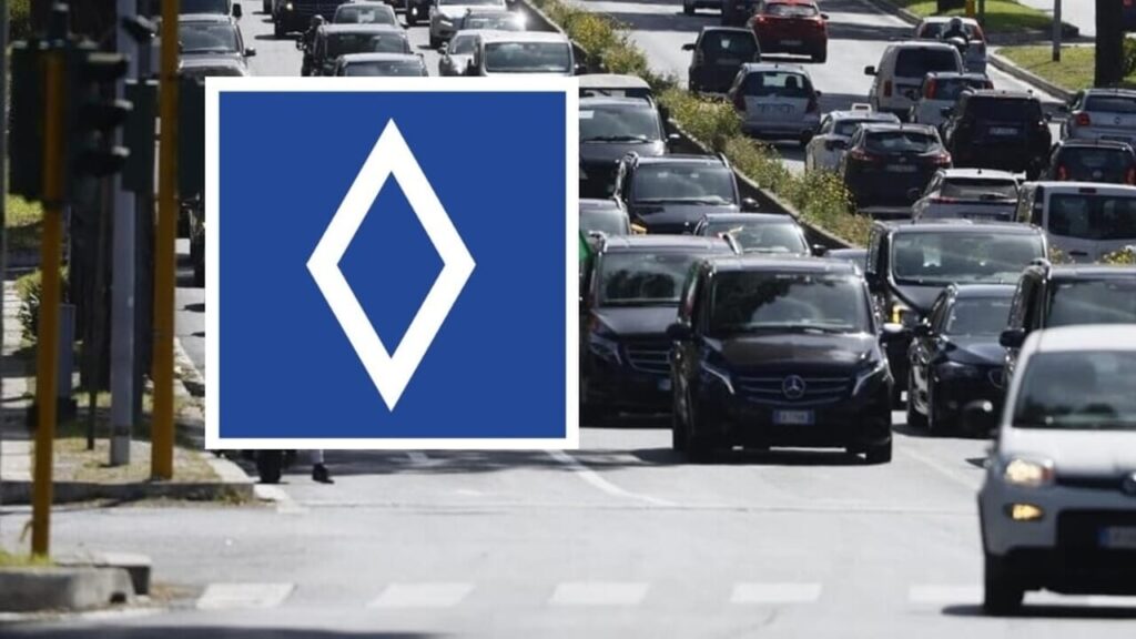 Was bedeutet das Schild mit der weißen Raute auf blauem Hintergrund, über das die Zeitungen viel berichten?